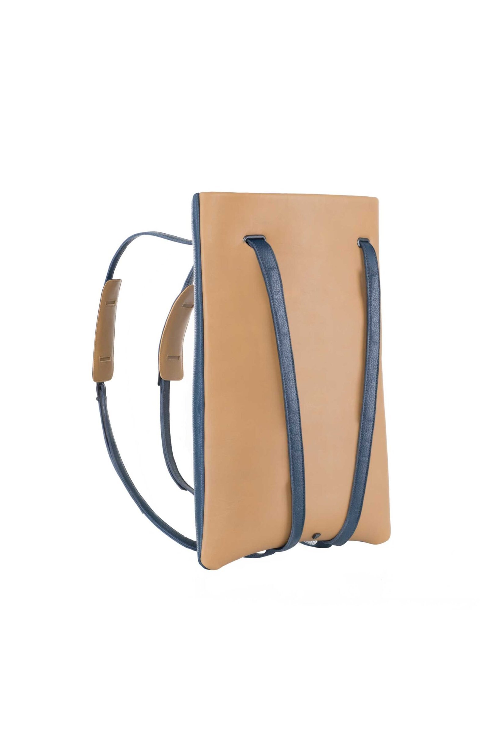 Reversible Laptop backpack in leather. You can use your backpack in two different ways. just pull the straps in the opposite direction and you will have the same backpack but with a different color.